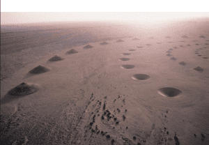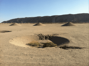 Desert Breath is a Land Art project created by D.A.ST. Arteam. The team was founded in 1995 by: Danae Stratou (installation artist & sculptor), Alexandra Stratou (industrial designer & architect), Stella Konstantinidis (architect), for the purpose of creating this project. The project is rooted in our common desire to work in the desert. In our mind’s eye the desert was a place where one experiences infinity. We were addressing the desert as a state of mind, a landscape of the mind. The point of departure was the conical form, the natural formation of the sand as a material.